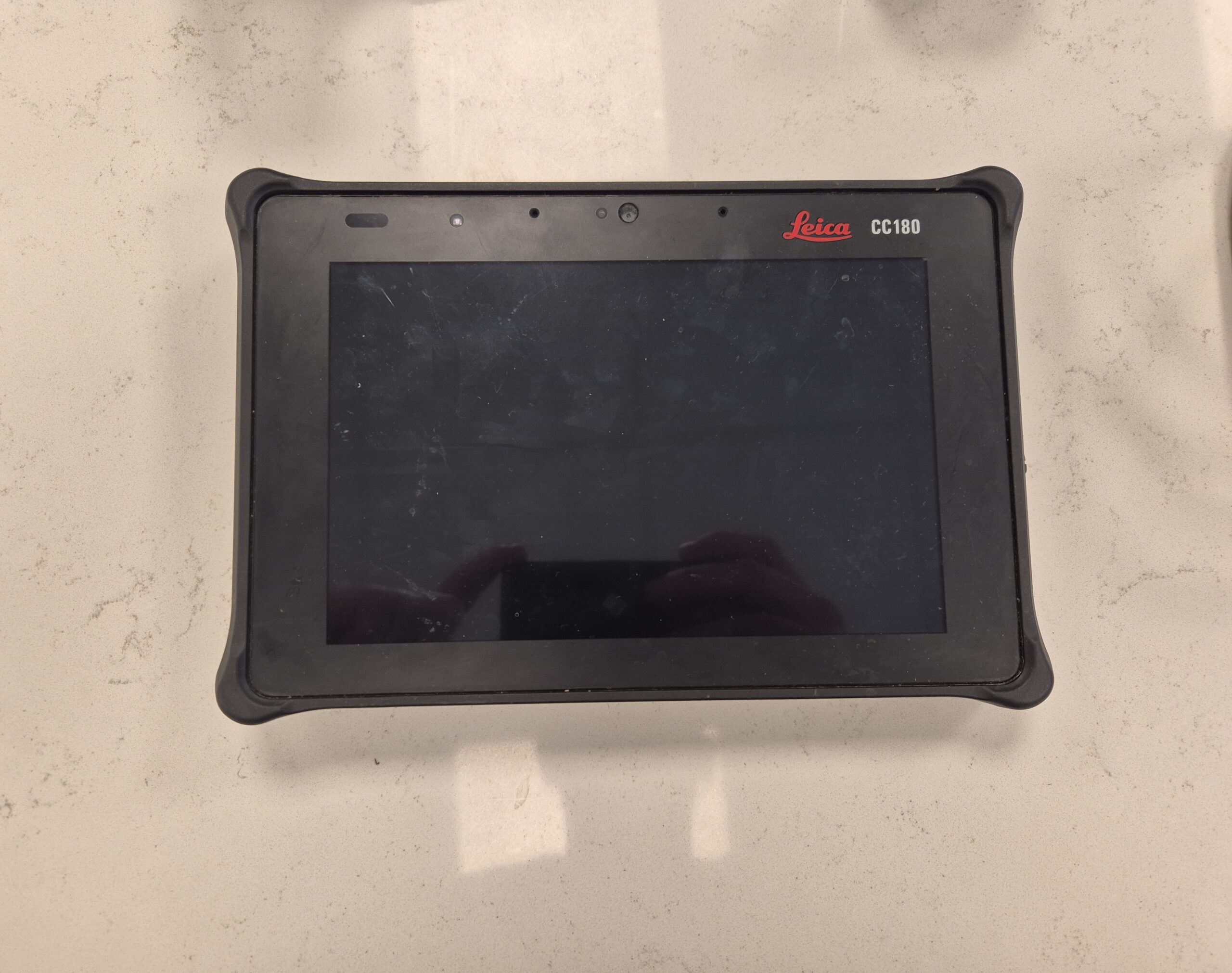 Tweedehands Leica CC180 tablet – bouwjaar 2024. Inclusief batterijlader en CMB18 houder. Robuust, compact en direct inzetbaar voor professionele meetprojecten.